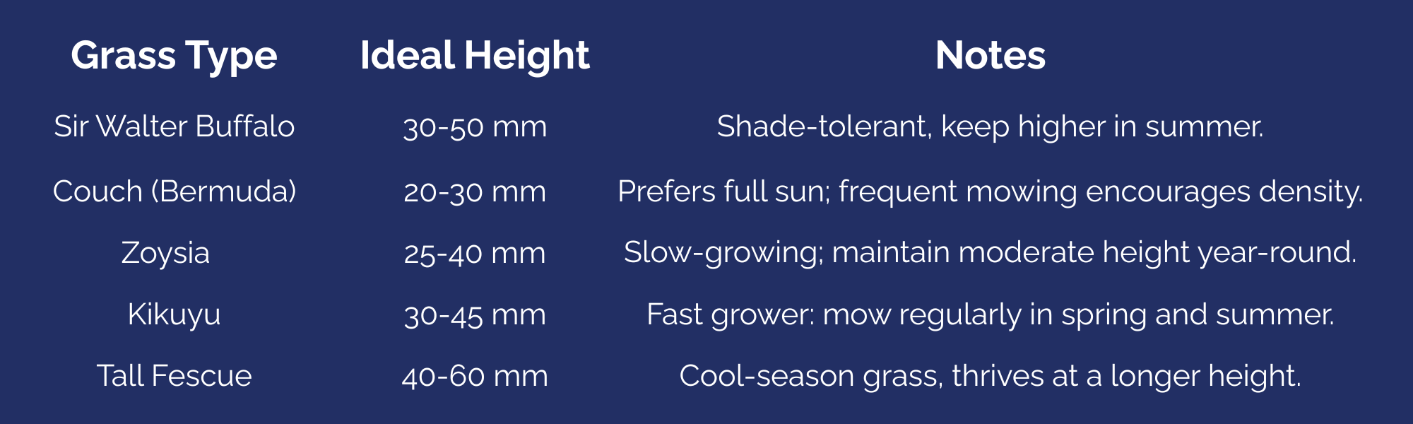 Every lawn variety thrives at a specific height. Here’s our quick reference guide:
